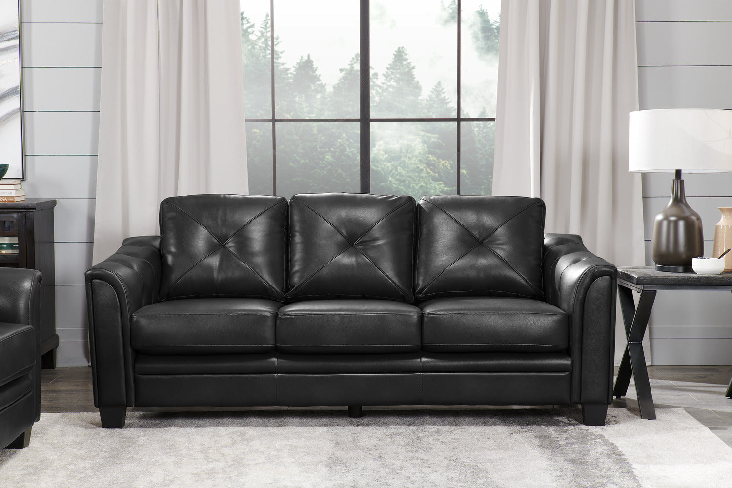 Andi 84" Leather-Look Fabric Sofa with Button Tufting - Black | Sofa Andi de 84 po en tissu d’apparence cuir avec capitonnage - noir