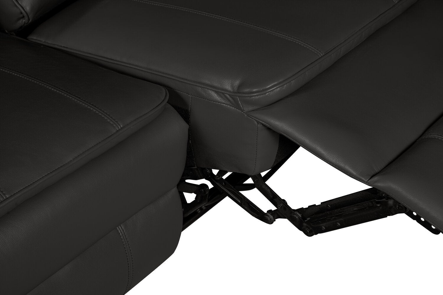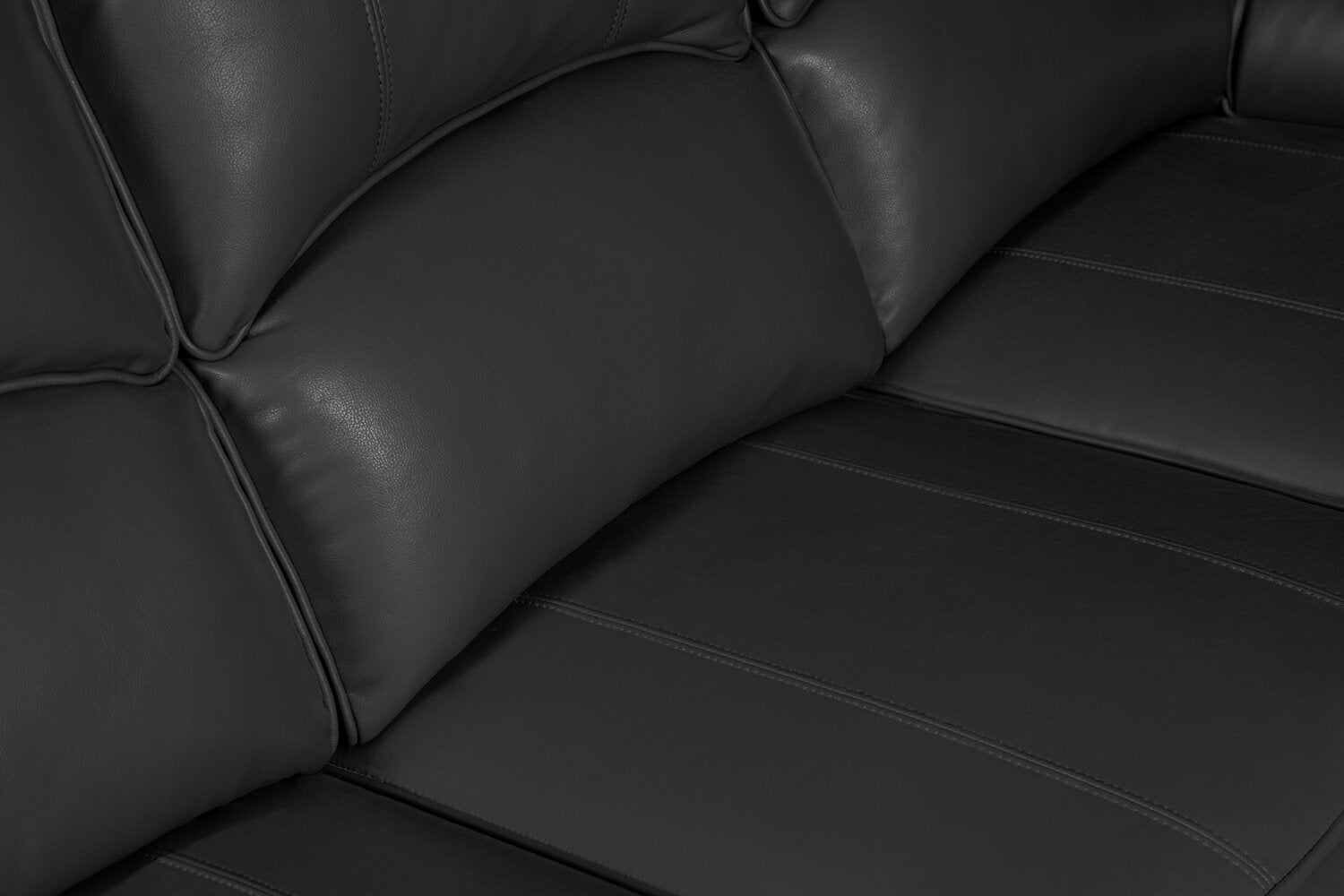 Make your home a space for friends to gather with this Chandler reclining sofa. The curved lines of the stitching on the backrest mirror the curve of the armrest padding, giving the sofa a smooth and clean appearance. A deep grey tone ensures you can decorate the rest of your space to your liking without the worry of clashing colours. Luxurious Leath-Aire fabric invites you to curl up and lean back while also keeping you cool all night. Focus on the fun and stay comfortable with this Chandler sofa.