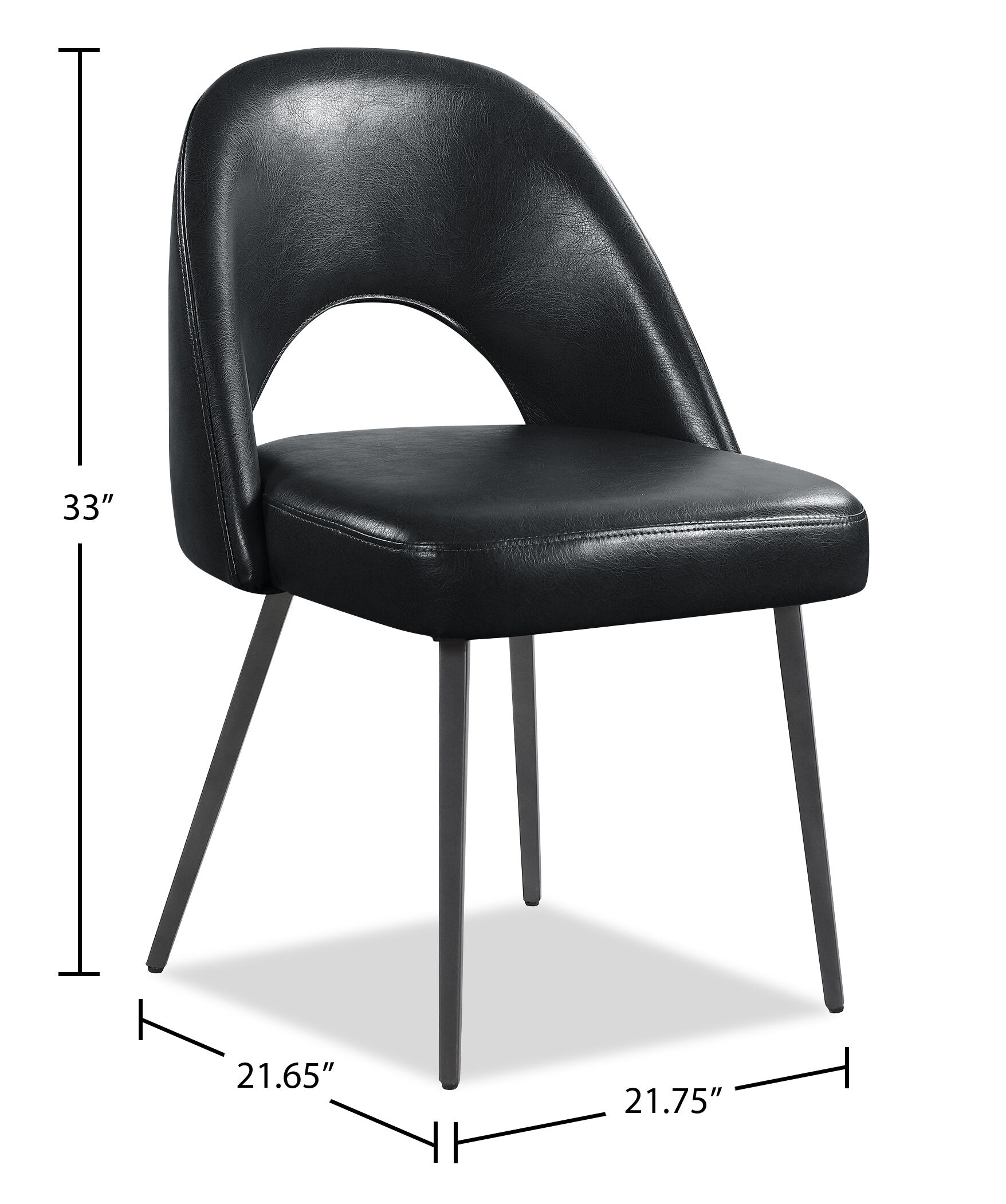 Elijah Dining Chair with Vegan Leather Fabric, Metal - Black | Chaise de salle à manger Elijah en tissu de cuir végétalien et en métal - noire