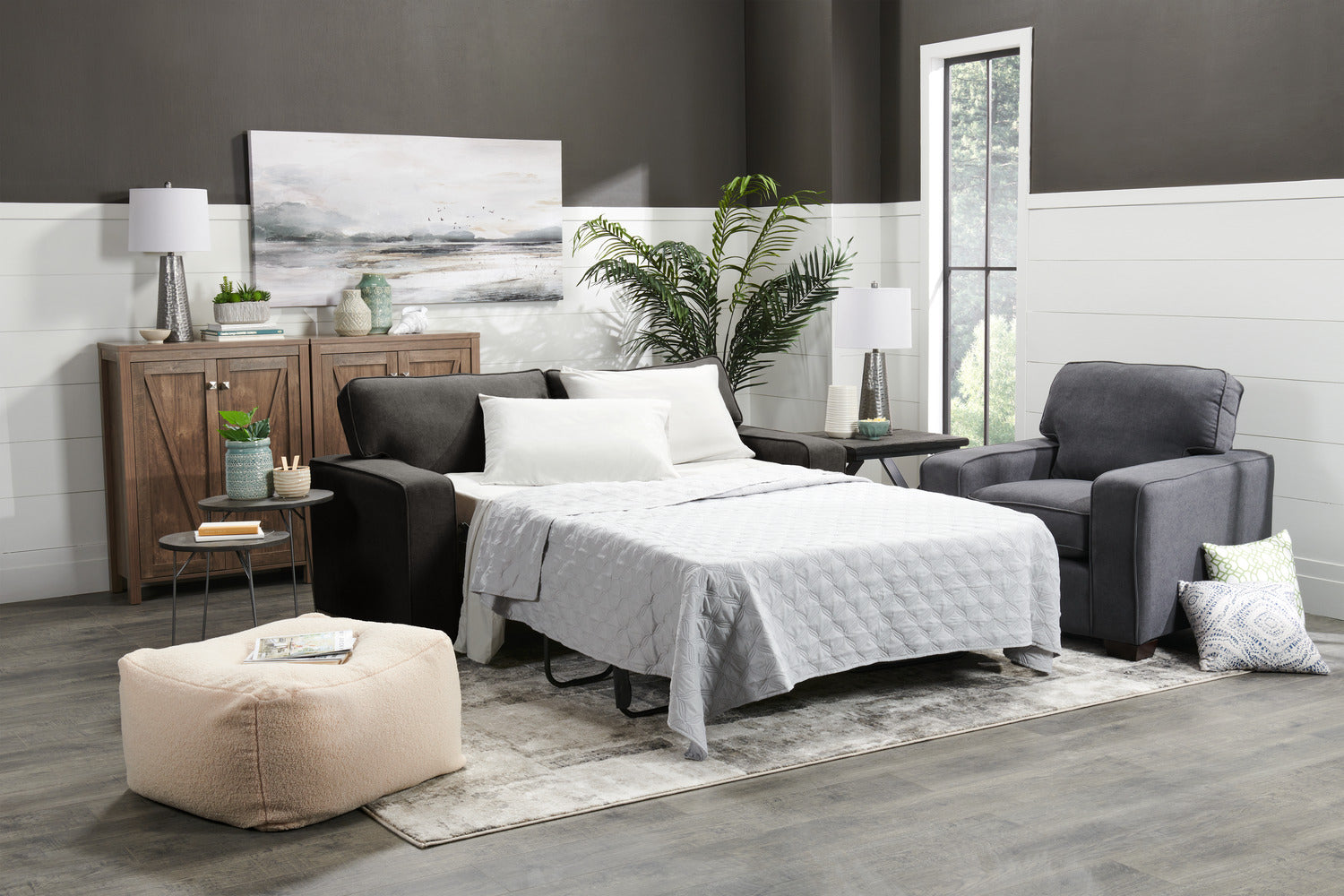 Let this grey-coloured Fiona full-size sofa bed make your house a home. Wrapped in cozy chenille fabric, this couch bed is a perfect piece to place in the heart of your living space. Meanwhile, the high-density foam stuffed inside the cushions brings comfort whenever you need to take a rest. Should you want to coordinate this piece with your favourite home accessories, the cool grey tone of the upholstery will be a perfect fit. Alternately, your guests can rely on the full-size innerspring mattress with a memory foam top hidden under the seat cushions if they need to fall asleep.