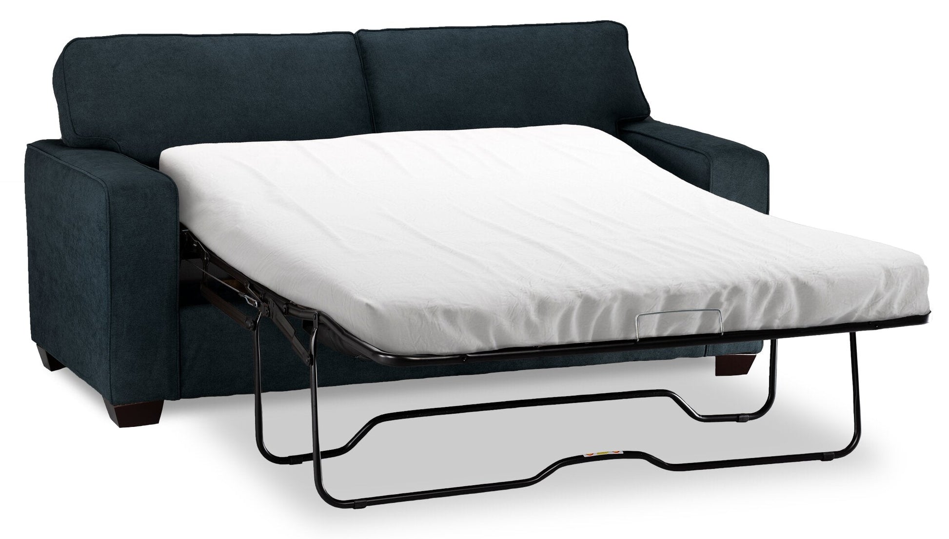 Let this navy-coloured Fiona twin-size sofa bed make your house a home. Wrapped in cozy chenille fabric, this couch bed is a perfect piece to place in the heart of your living space. Meanwhile, the high-density foam stuffed inside the cushions brings comfort whenever you need to take a rest. Should you want to coordinate this piece with your favourite home accessories, the dark blue tone of the upholstery will be a perfect fit. Alternately, your guests can rely on the twin-size innerspring mattress with a memory foam top hidden under the seat cushions if they need to fall asleep.