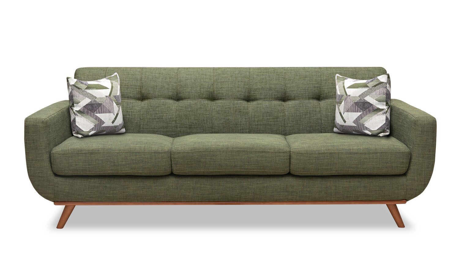 Amaze your guests with the stunning Freeman sofa from Kort & Co. Exclusive to The Brick, this piece will amplify your taste and beautifully complement your style. Upholstered in green linen-look fabric, this sofa is sure to wow with its unique texture and tufted back cushions. Plus, the squared arms and rounded seat base provide a gorgeous contrast that will tie together various aspects of your home. Both beautiful to look at and pleasant to relax in, this piece provides utmost comfort with fibre fill and high-density foam cushions. With the Freeman, beauty and comfort are unmatched.