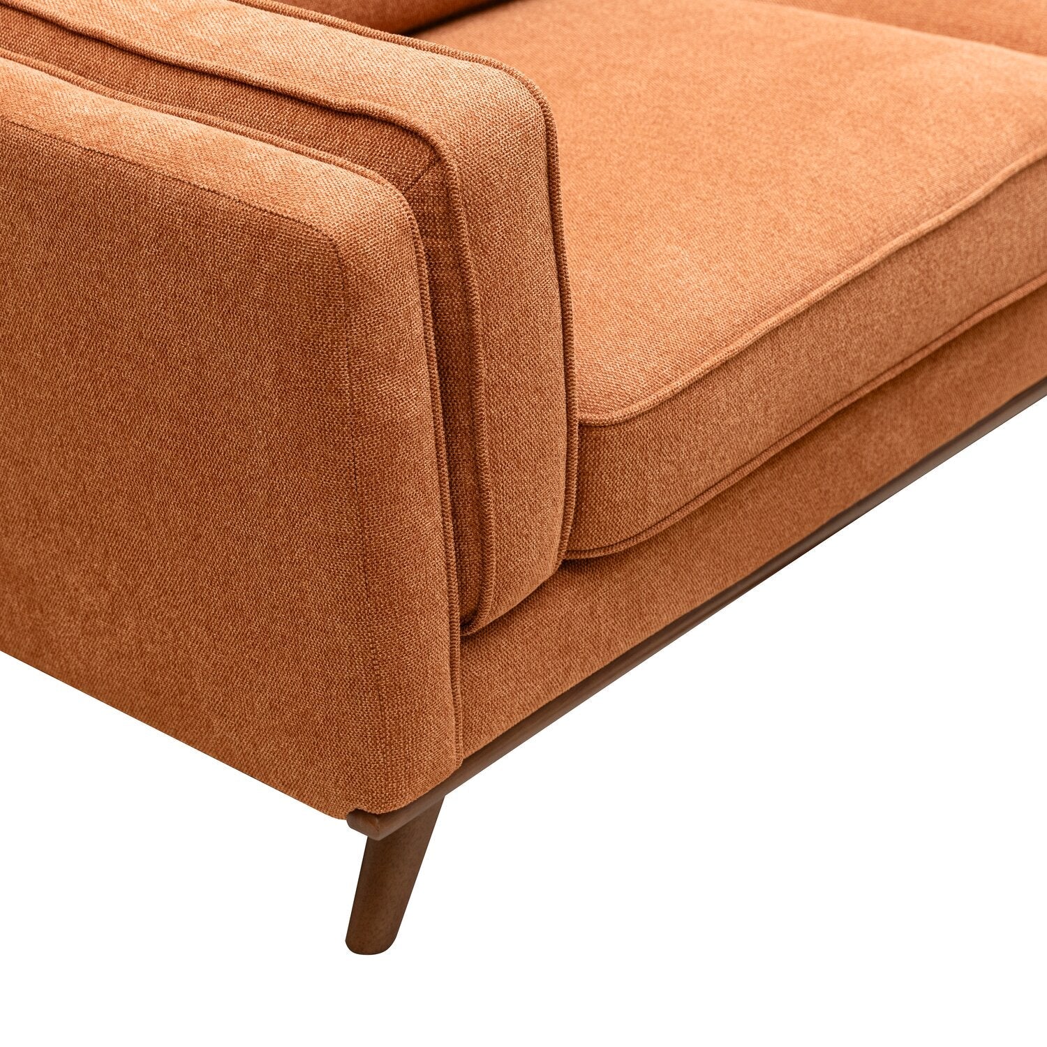 Kort & Co. Kassia 80" Linen-Look Fabric Condo Size Sofa with Wood Base and Legs - Orange | Sofa Kassia de Kort & Co. de 80 po de format condo en tissu d’apparence lin avec base et pattes en bois - orange