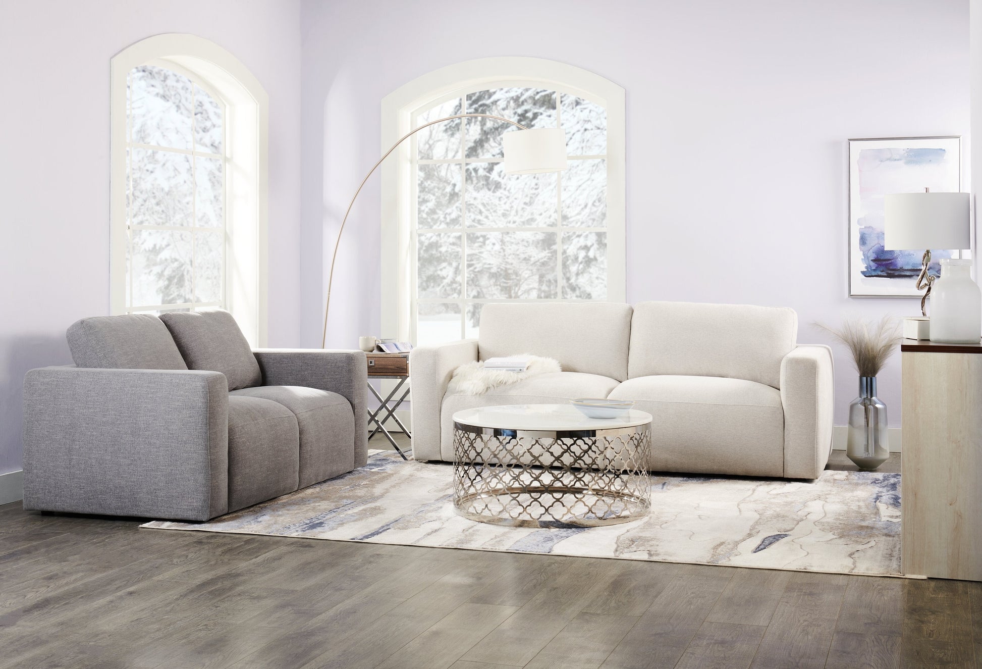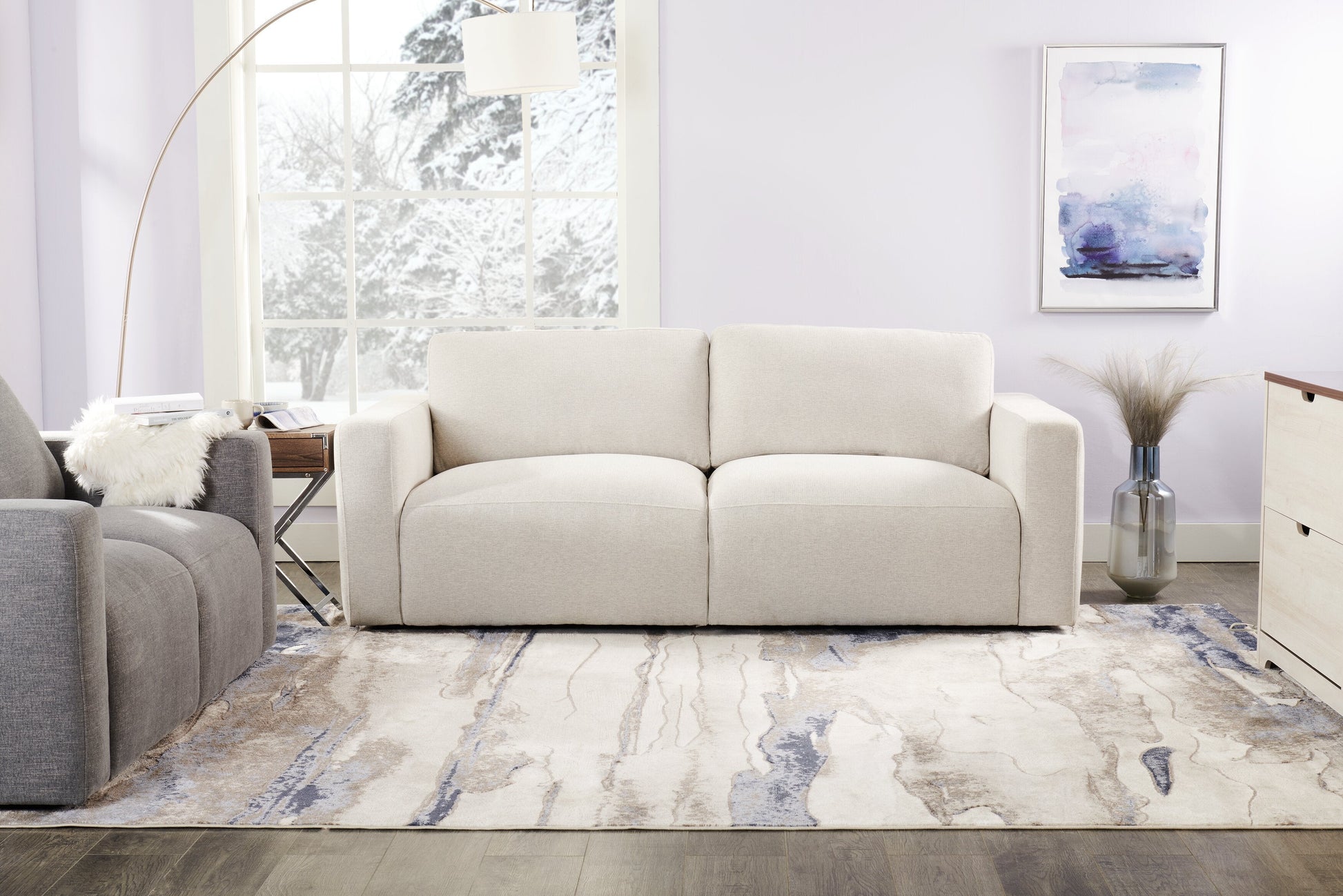 Kort & Co. Lotus 89" Chenille Fabric Sofa with Feather Down Cushions - Linen Grey | Sofa Lotus de Kort & Co. de 89 po en tissu de chenille avec coussins en duvet et plumes - gris lin