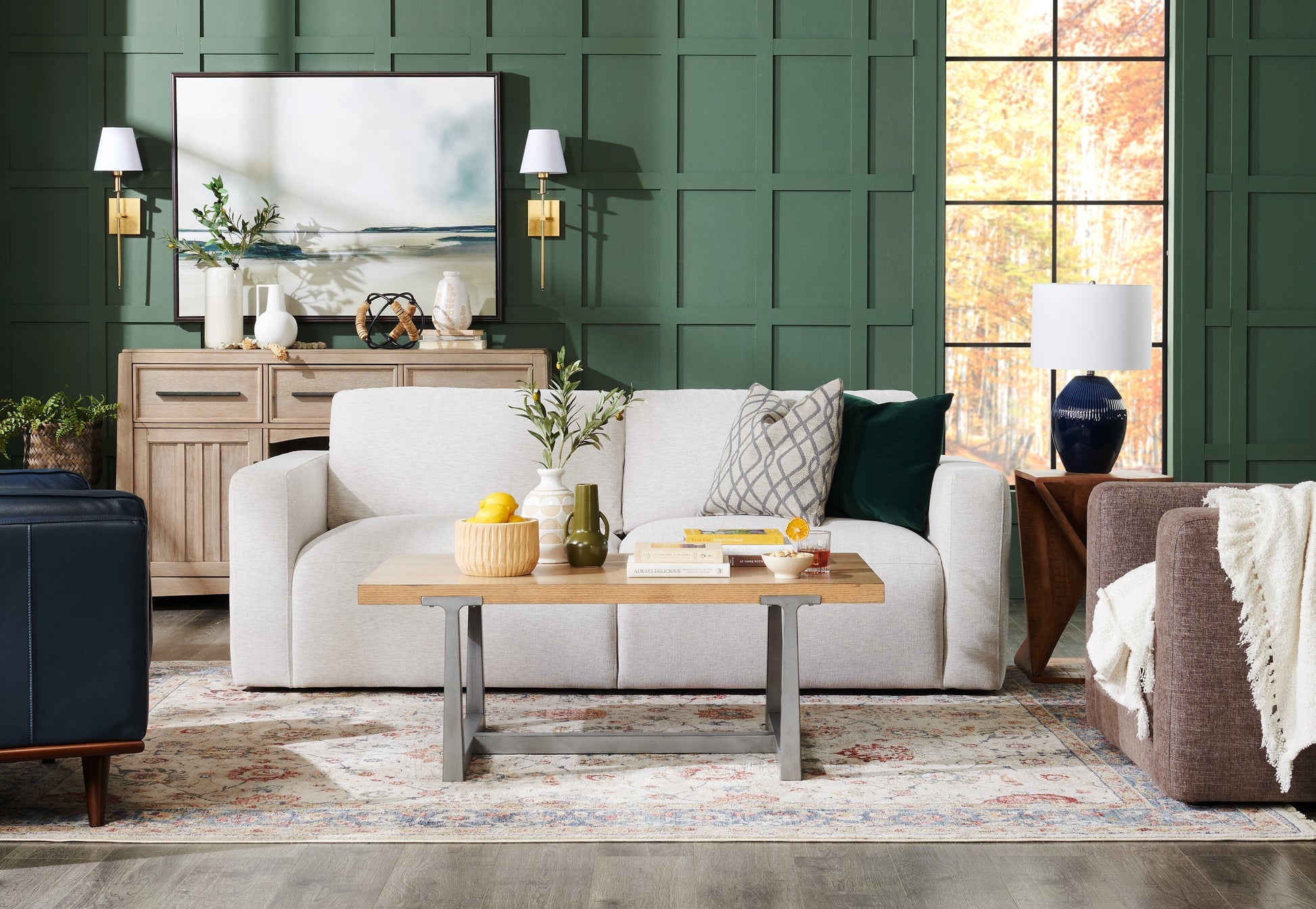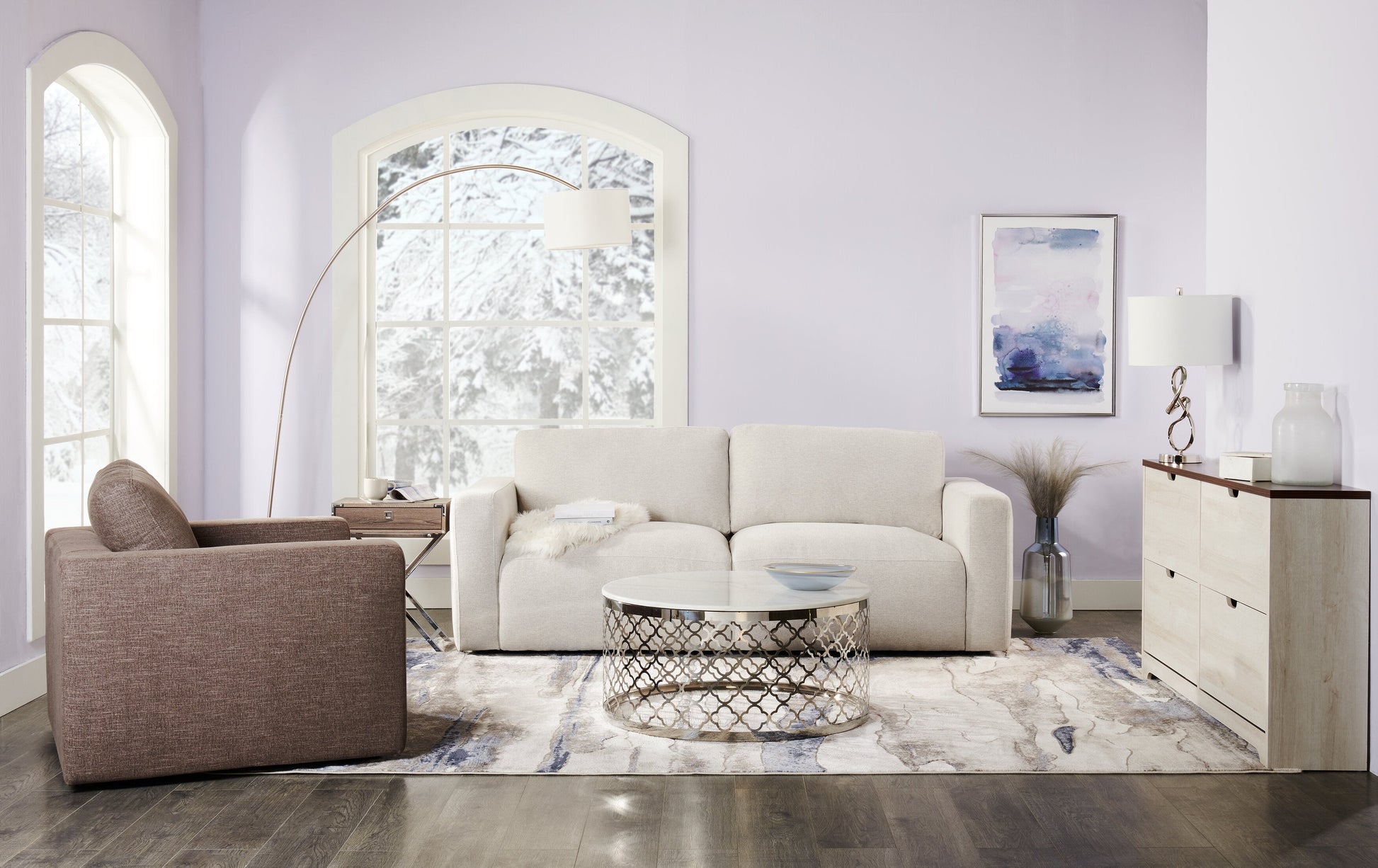 There's plenty of room to relax on this light grey Lotus sofa from Kort & Co. by Kortney Wilson. Exclusive to The Brick, this elegant piece is wrapped in soft chenille to soothe you when you sit down. Each cushion features both down feathers and high-density foam for a truly restful space to welcome friends and family. If you're more interested in style, this modern piece has it in spades – a low-profile design, soft edges and wide seating all make this couch look chic without much effort. Resting on robust plastic feet, this Kort & Co. Lotus sofa brings harmony to your home.