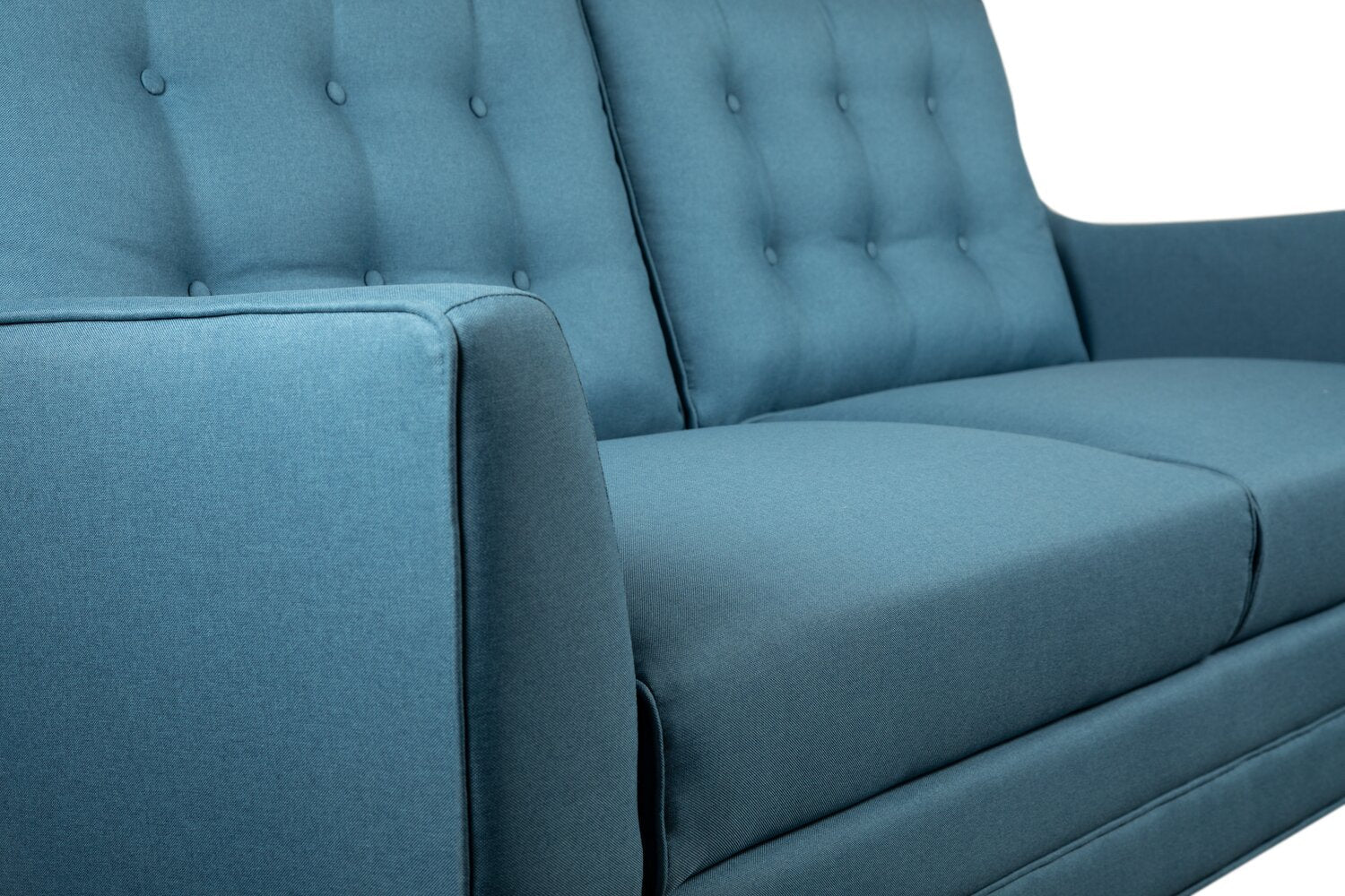 Keep your living room looking stylish when you add this Novalee sofa. Blue linen-look fabric is neatly tailored to the furniture frame to make this piece look sharp. High-density foam fills the seating area so you can stay cozy during movie nights and family time. Plus, button-tufting on the back cushions brings an extra boost of plush feeling. For additional support, black plastic feet rest under the couch to ensure this piece won't fall down on the job. This Novalee sofa creates a chic and welcoming appeal, no matter where you place it in your home.