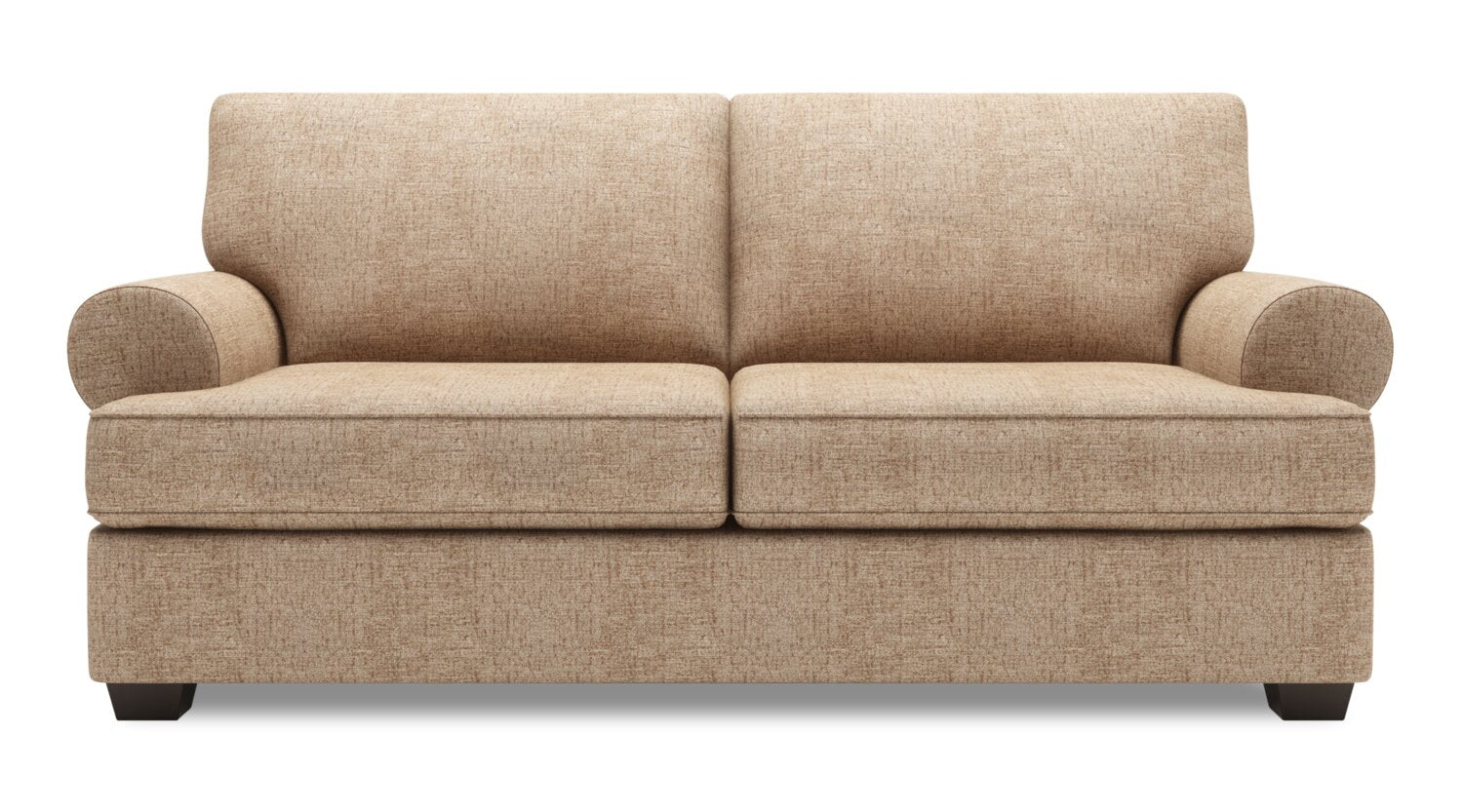 This Roll condo sofa from The Brick's exclusive Sofa Lab custom furniture program brings your personal style to a whole new level. Rolled armrests provide the namesake for this collection, while generously padded cushions and dark brown wood feet add a classic look to your space. Corner blocking the hardwood frame gives this piece the stability and support your family needs. Take your pick from three fabrics, each with a choice of six colours, then watch the Roll condo sofa turn your living room into a reflection of your decor style.