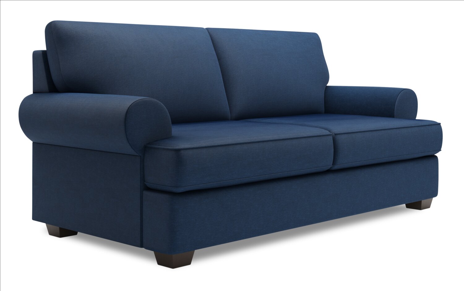 This Roll condo sofa from The Brick's exclusive Sofa Lab custom furniture program brings your personal style to a whole new level. Rolled armrests provide the namesake for this collection, while generously padded cushions and dark brown wood feet add a classic look to your space. Corner blocking the hardwood frame gives this piece the stability and support your family needs. Take your pick from three fabrics, each with a choice of six colours, then watch the Roll condo sofa turn your living room into a reflection of your decor style.