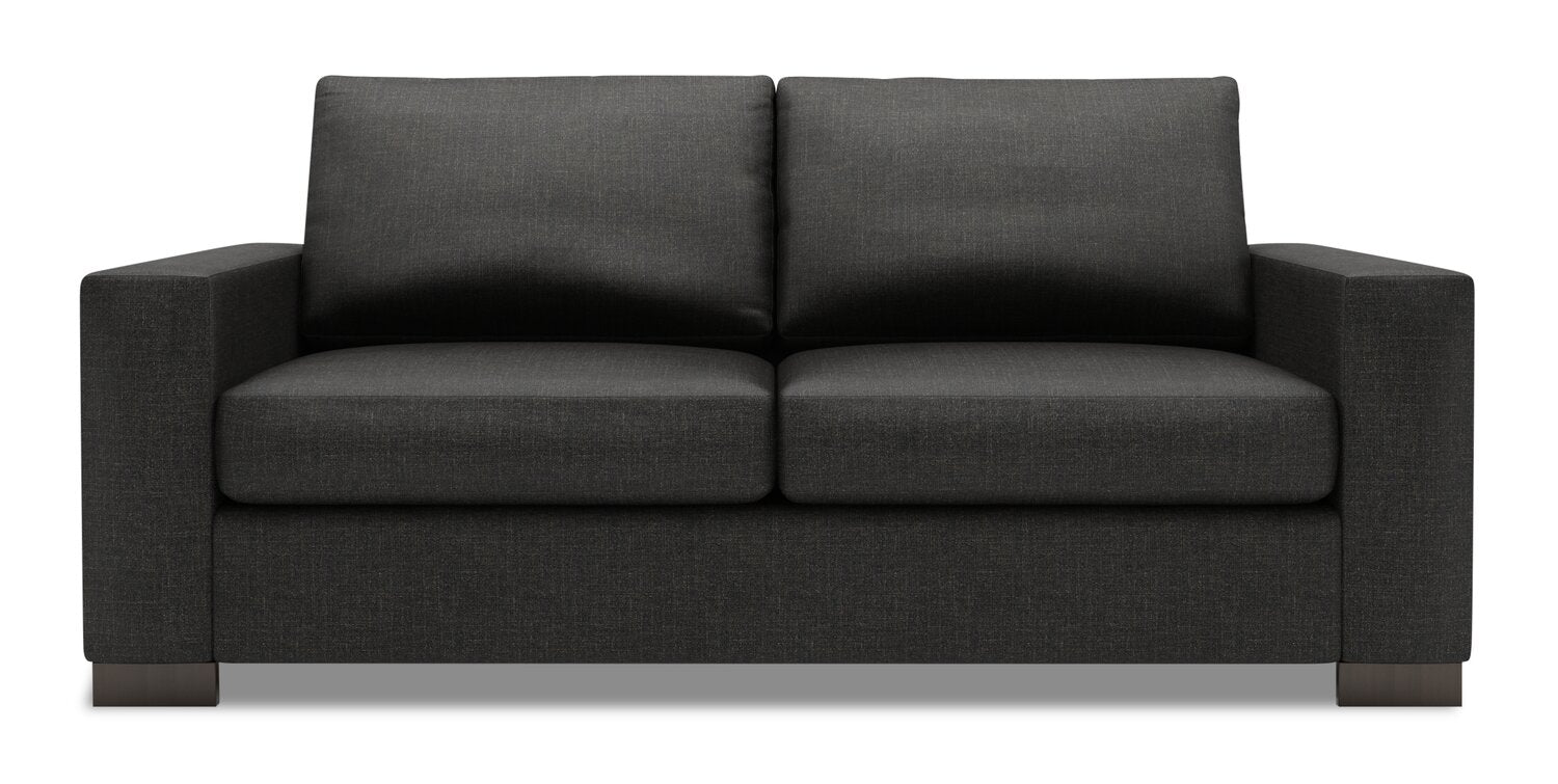 Made in Canada Customizable Sofa Lab Track 75" Linen-Look Fabric Condo Size Sofa with Track Arms - Luna Kohl Grey | Sofa Track de Sofa Lab de 75 po de format condo fabriqué au Canada en tissu d’apparence lin - gris Luna Kohl | TR092691