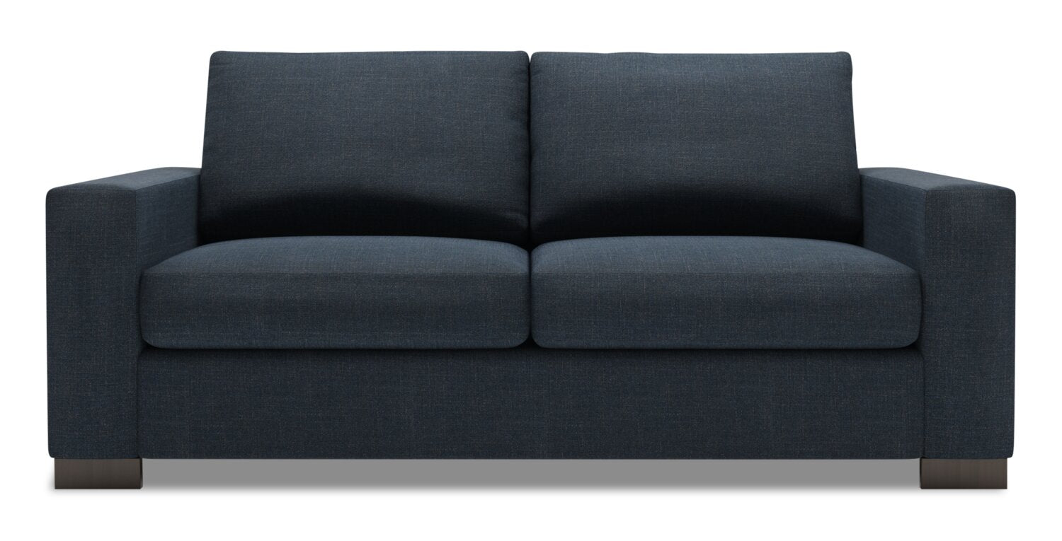 Made in Canada Customizable Sofa Lab Track 75" Linen-Look Fabric Condo Size Sofa with Track Arms - Luna Sailor Blue | Sofa Track de Sofa Lab de 75 po de format condo fabriqué au Canada en tissu d’apparence lin - bleu Luna Sailor | TR092491