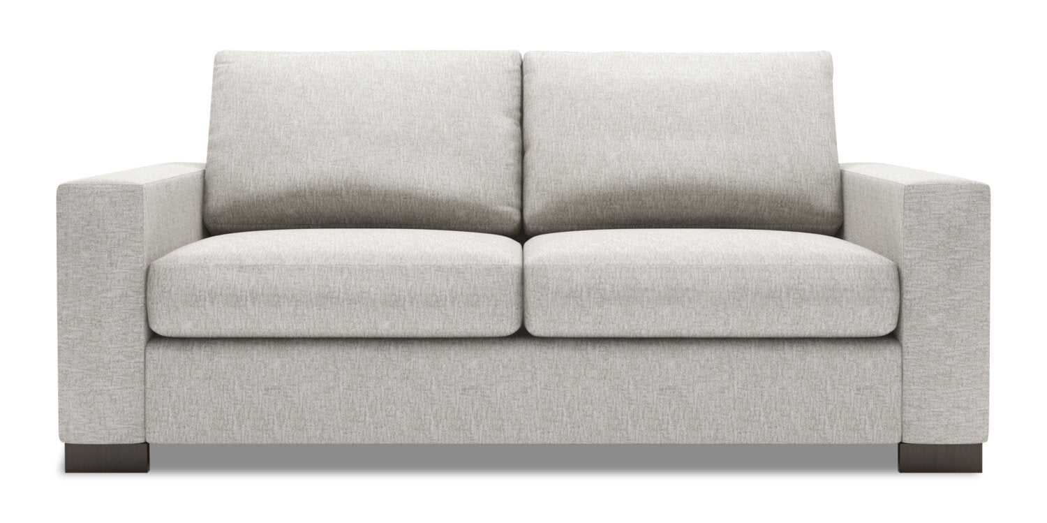 Give your living space a fresh look with this Track condo sofa from The Brick's Sofa Lab custom furniture program. Named after the track armrests, this piece also features clean lines for those who prefer a modern look in their home. High-density foam fills the cushions to keep you cozy while watching your TV favourites. Corner blocks in the hardwood frame's corners help to keep the furniture in great shape. Once you’ve chosen your favourite fabric and colour, watch the Track condo sofa transform your room into the perfect style haven.
