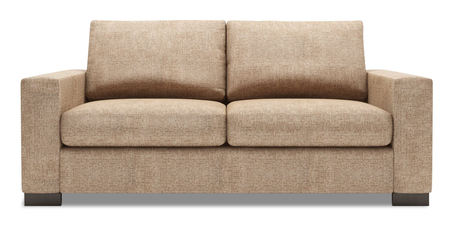 Give your living space a fresh look with this Track condo sofa from The Brick's Sofa Lab custom furniture program. Named after the track armrests, this piece also features clean lines for those who prefer a modern look in their home. High-density foam fills the cushions to keep you cozy while watching your TV favourites. Corner blocks in the hardwood frame's corners help to keep the furniture in great shape. Once you’ve chosen your favourite fabric and colour, watch the Track condo sofa transform your room into the perfect style haven.